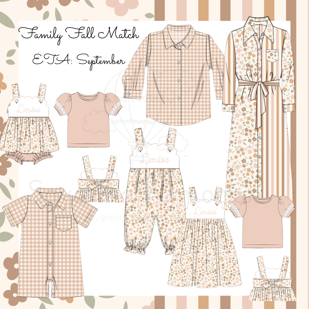 This collection will make for perfect matching family photos this fall. Our Fall Family Match collection is made from woven fabric with no stretch for the mom and dad outfits and stretchy knit for all the children's options!